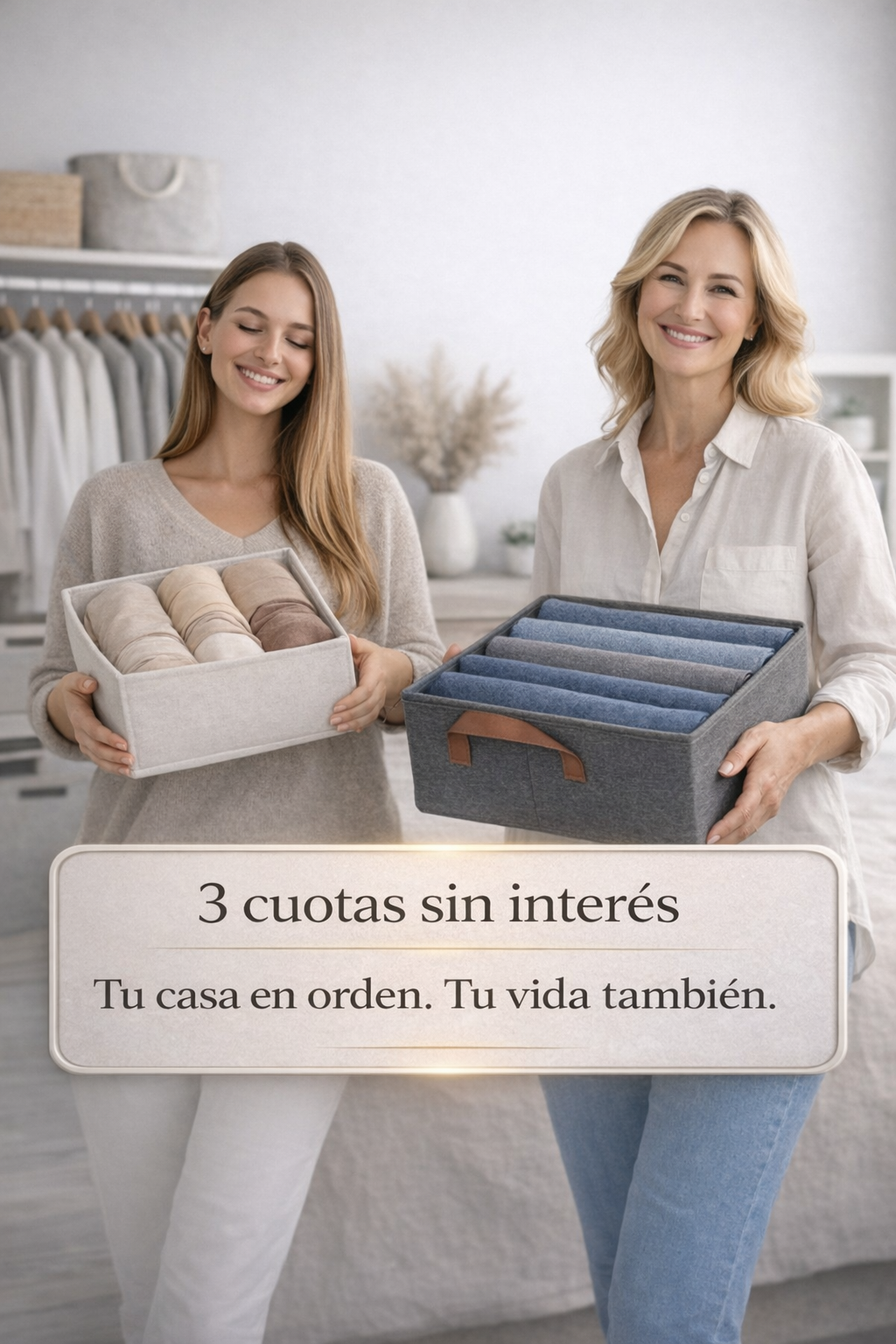 Organizadores plegables y apilables para que todo quede prolijo, rápido y a mano.